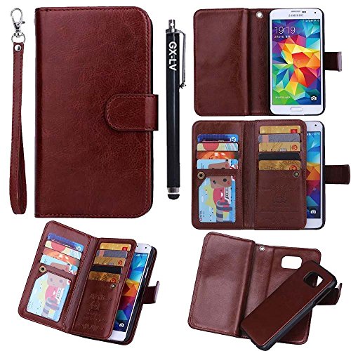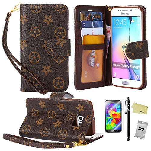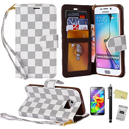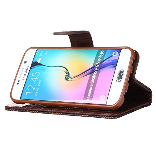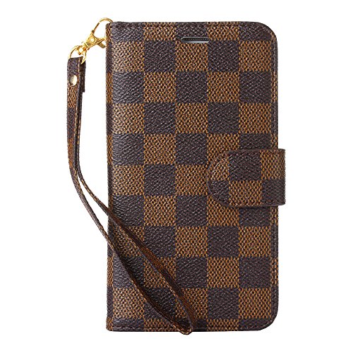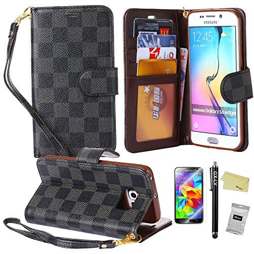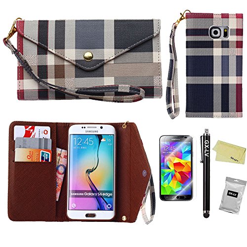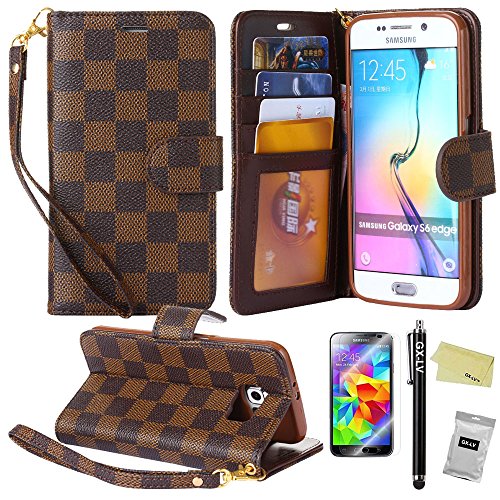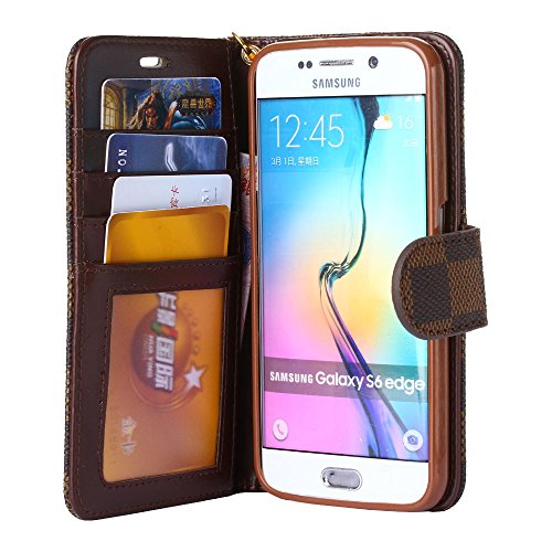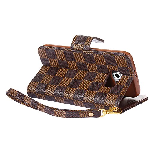 GX-LV Wrist Strap Leather Wallet Case with Card Slots for Galaxy S6 Edge, Retail Packaging, Brown Checkered