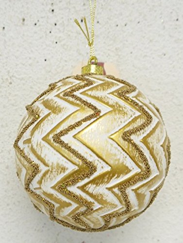 4" Chevron Design Gift Boxed Christmas Ball Ornaments SET OF SIX Your Choice of GOLD or SILVER (gold)