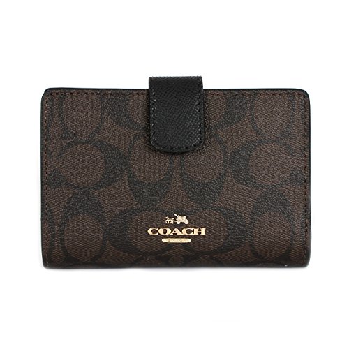 -. Title : Coach Signature PVC Medium Corner Zip Wallet and Coin Purse F54023 Brown Black