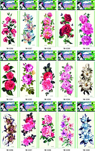 Grashine 15pcs temporary tattoos in one package,it including roses,various colorful flowers,peony,etc.