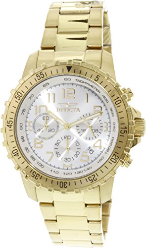 Invicta Men's 11369 Specialty Pilot Design Chronograph Silver Dial 18k Gold Ion-Plated Stainless Steel Watch