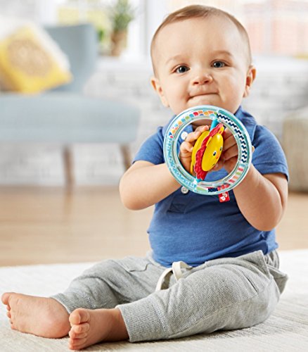 -. Feature : Clear rattle ring with fun P.R.Ints & patterns / X and O-shaped beads inside ring make fun rattling sounds / Lion with soft fabric mane spins when baby bats at it / Birdie friend and knotted lion tail on back