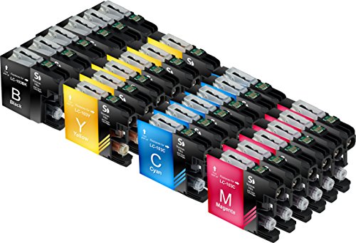 Sherman Inks and Toner Cartridges ® 24 Pack Canon LC103 ; LC101 Ink Cartridge Compatible Replacement with 6 Black, 6 Cyan, 6 Magenta, 6 Yellow for Brother inkjet printers DCP-J152W, MFC-J245, MFC-J285DW, MFC-J4310DW, MFC-J4410DW, MFC-J450DW, MFC-J4510DW,