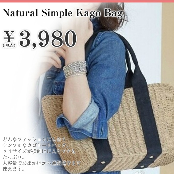 シンプルでA4ファイルが横に入るマチ付き大容量のカゴトートバッグです。