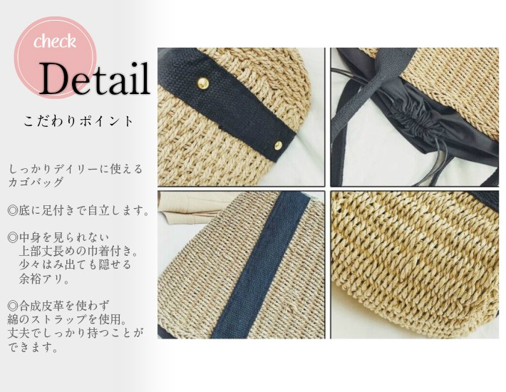 ナチュラル派はそのまま、個性派はスカーフを巻いたり、革のハンドルやストラップをつけたり、ビーズやスパンコールなどクラフトを施したり、自由にカスタマイズできるベースのバッグとしてお使いいただけます。