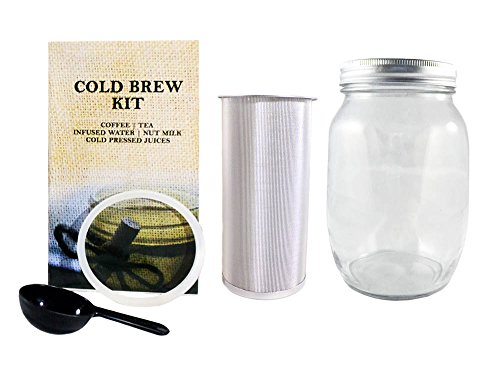 COMPLETE COLD BREW SYSTEM: The Klein Cold Brew Kit is designed from an extra heavy-duty 304 Stainless Steel wire. The special weave of the 100-micron mesh provides the smoothest no-grit finish in town. This kit comes complete with the filter, 1 quart (32oz) Durable Wide Mouth Mason Jar + lid, spoon, and a perfect-seal silicone gasket to keep your home brew leak free!