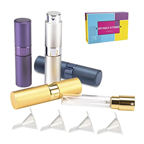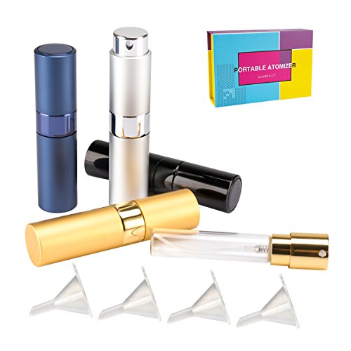 Package details: 4 perfume spray bottles and 4 funnel fillers in one nice box