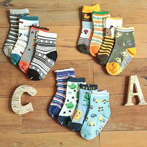 -. Title : B&S FEEL Baby's Assorted 12 Pairs Cotton Socks (Anti-slip 1 to 3 Years Old)