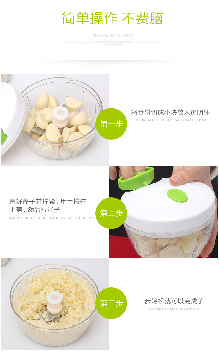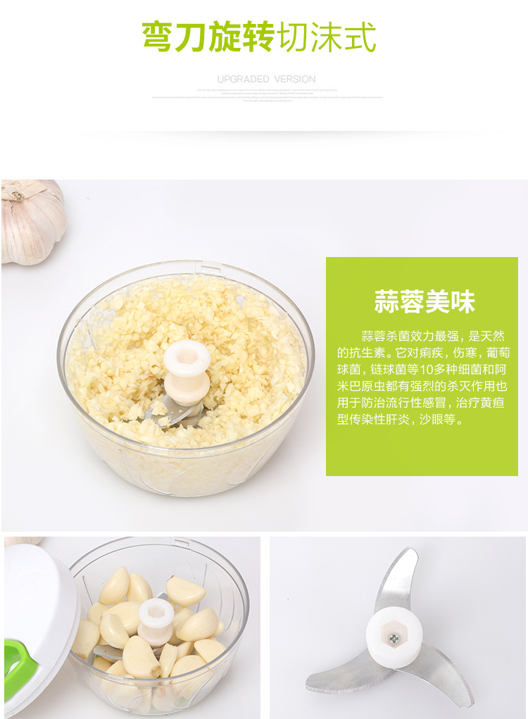一般的蔬菜都可以绞碎,你可以用它来做辣椒酱,可以碎蒜头、生姜,芹菜等等,我们生活中一般长见的蔬菜都可以用这款碎菜