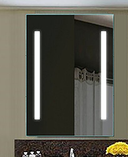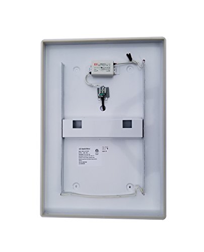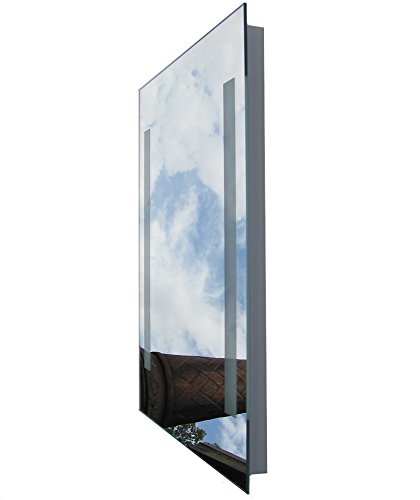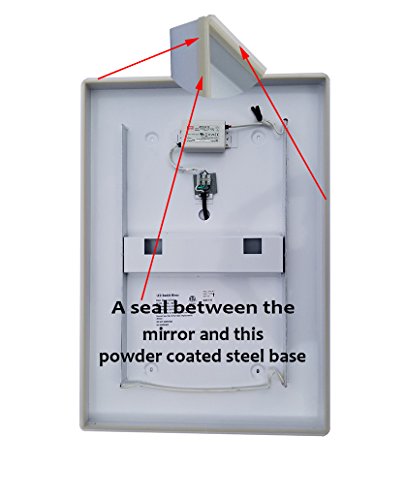 HIGH QUALITY: 5mm polished silver mirror with safety backing - White powder coated steel base - IP Rating: IP44, suitable for use in bathrooms - Special anti-corrosion mirror treatment - Fingerprint-free on mirrors frosted area - 19.7" W X 27.6" H X 1.77" deep