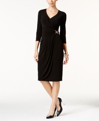 This understated faux-wrap dress from Thalia Sodi finishes with a glimmer thanks to gold-tone buckle hardware. Concealed back zipper closure