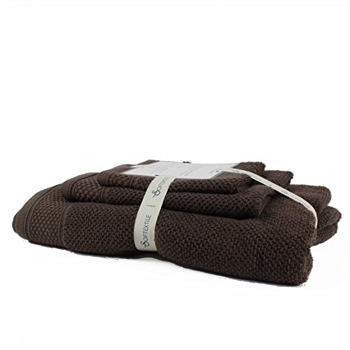 Towel set includes (1) 55 x 28 inch bath towels, (1) 30 x 14 inch hand towels, and (1) 14 x 14 inch washcloths