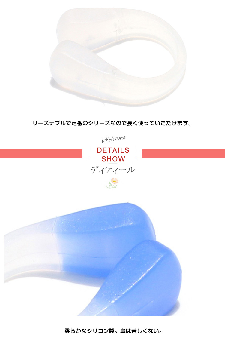 | 安心・安全のシリコン製の鼻せんです。アジア人の鼻型にあわせて設計し、圧迫感がなく気持ちよく長く使えます♪表面の独特なブツブツ設計により、ノンスリップは効果的◎リーズナブルで定番のシリーズなので長く使っていただけます。 | |