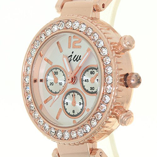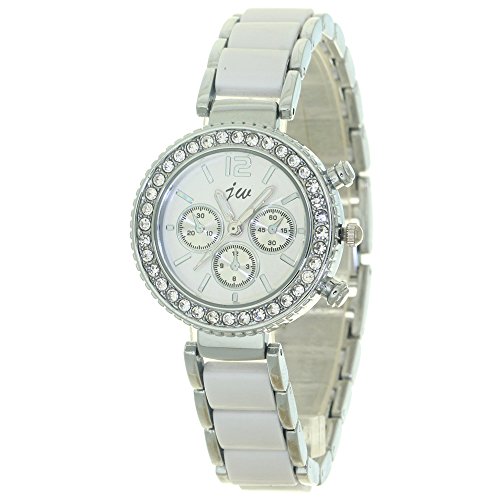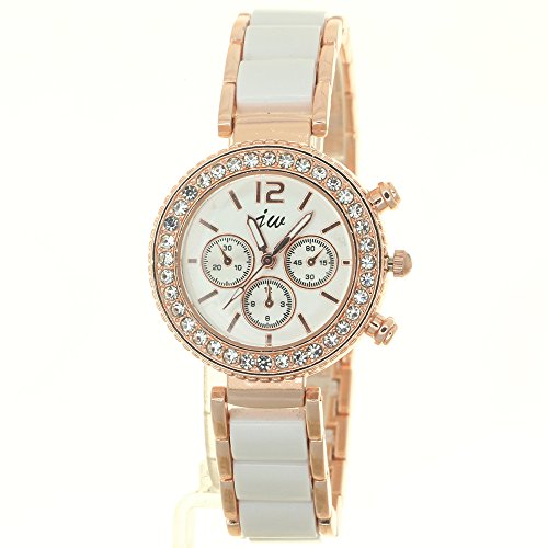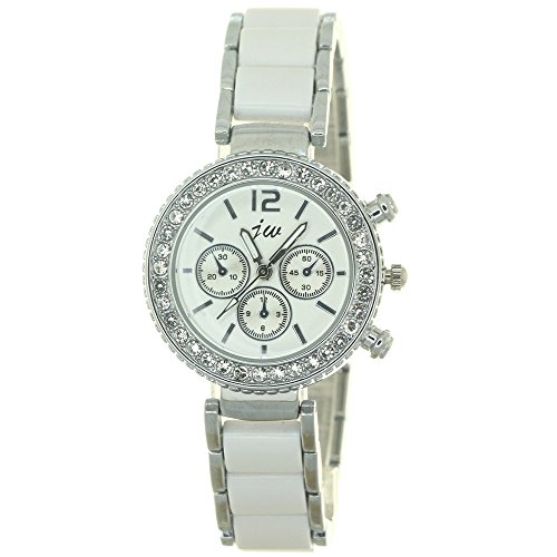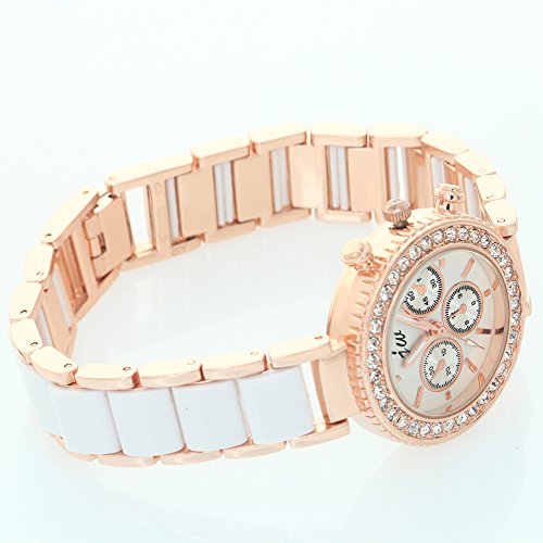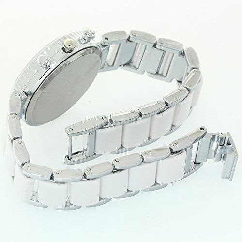 -. Title : Womens Wristwatch Gold tone Metal White Ceramic Mixed Band Sub Dial Decorated Fashion Watch