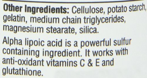 Product DescriptionAlpha Lipoic Acid is a sulfur containing ingredient. It has been shown to work with anti-oxidant vitamins C E and glutathione.0