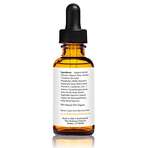 -. Title : New Radiance Naturals - GUARANTEED Best Results Natural & Organic Anti-Aging Vitamin C Serum With 20% Vitamin C + E + 11% Hyaluronic Acid + MSM For Fading Wrinkles, Freckles, Acne Scars, Discoloration & Age Spots On Face And Hands. 1 Ounce.