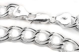 -. Title : 9mm Wide Sterling Silver 8" Double Link Chain Charm Bracelet