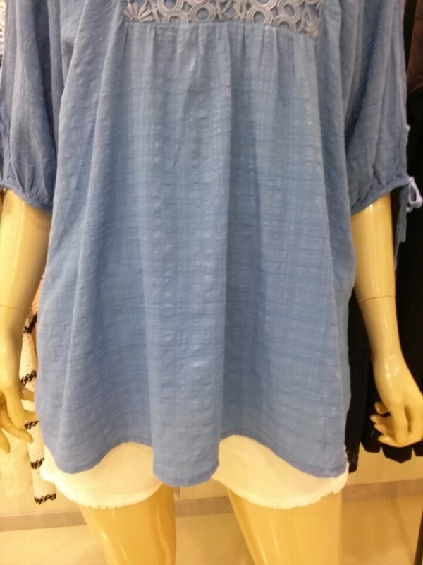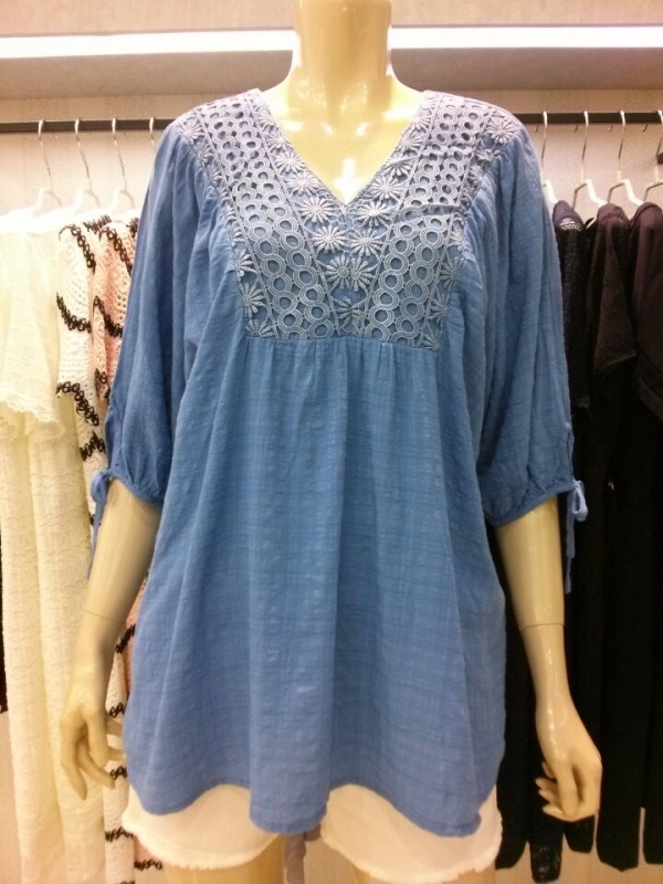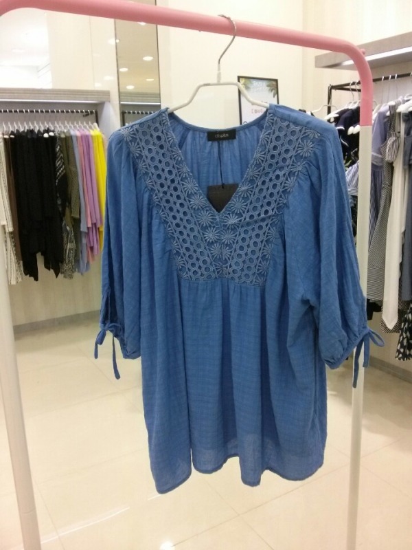 네크라인 주위의 레이스장식으로 여성스럽고 귀여운 디자인의 블라우스예요~^^