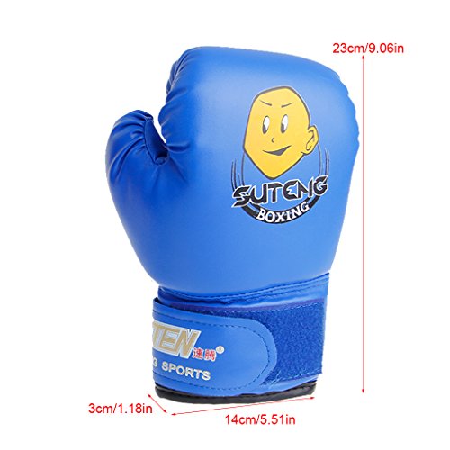 Features: Made of high-quality material, they are durable for long-term use They can give you optimal striking protection in the training and competition Boxing gloves are indispensable appliances for daily training The Palm has breathable holes,they are comfortable to wear The compressed sponge inner, soft handle,buckle design to fit your size, The back of glove and strap thicken foam,well protecting wrist Designs for any boxing training Specifications: Color : Red/Blue/Black Material : Faux Leather Sponge Size : 23*14*3cm/9.06"*5.51"*1.18"(L*W*T) Age : 3-12 Years Quantity: 1Pair No Retail Packages Note: Due to the difference between different monitors, the picture may not reflect the actual color of the item. Thank you! Package : 1Pair * Boxing Gloves 0
