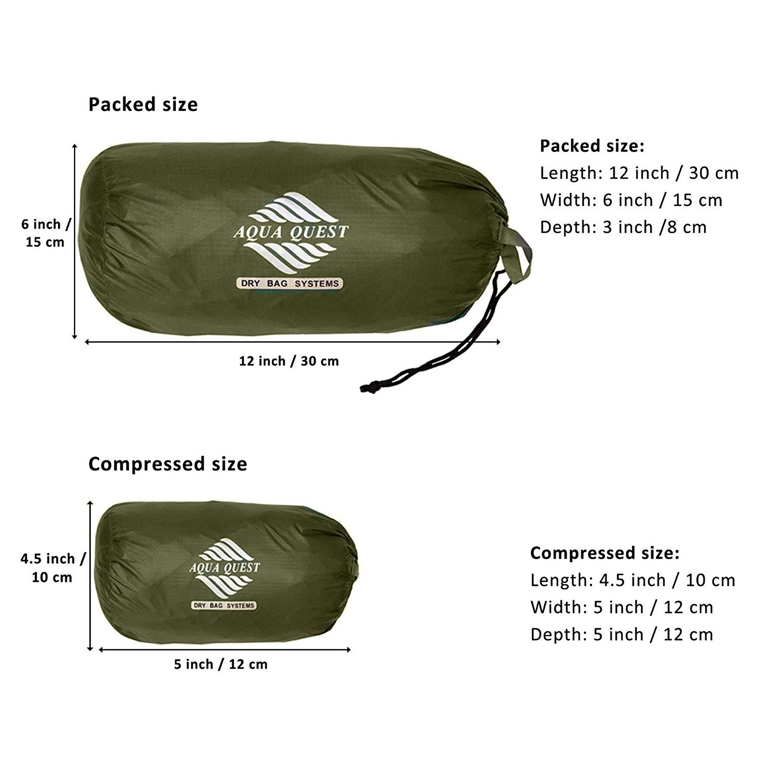 AquaQuest's main waterproofing method: Light weight and durable ripstop nylon material is coated with double TPU (thermoplastic polyurethane) coating + DWR (durable water repellent) processing or silicon impregnation.