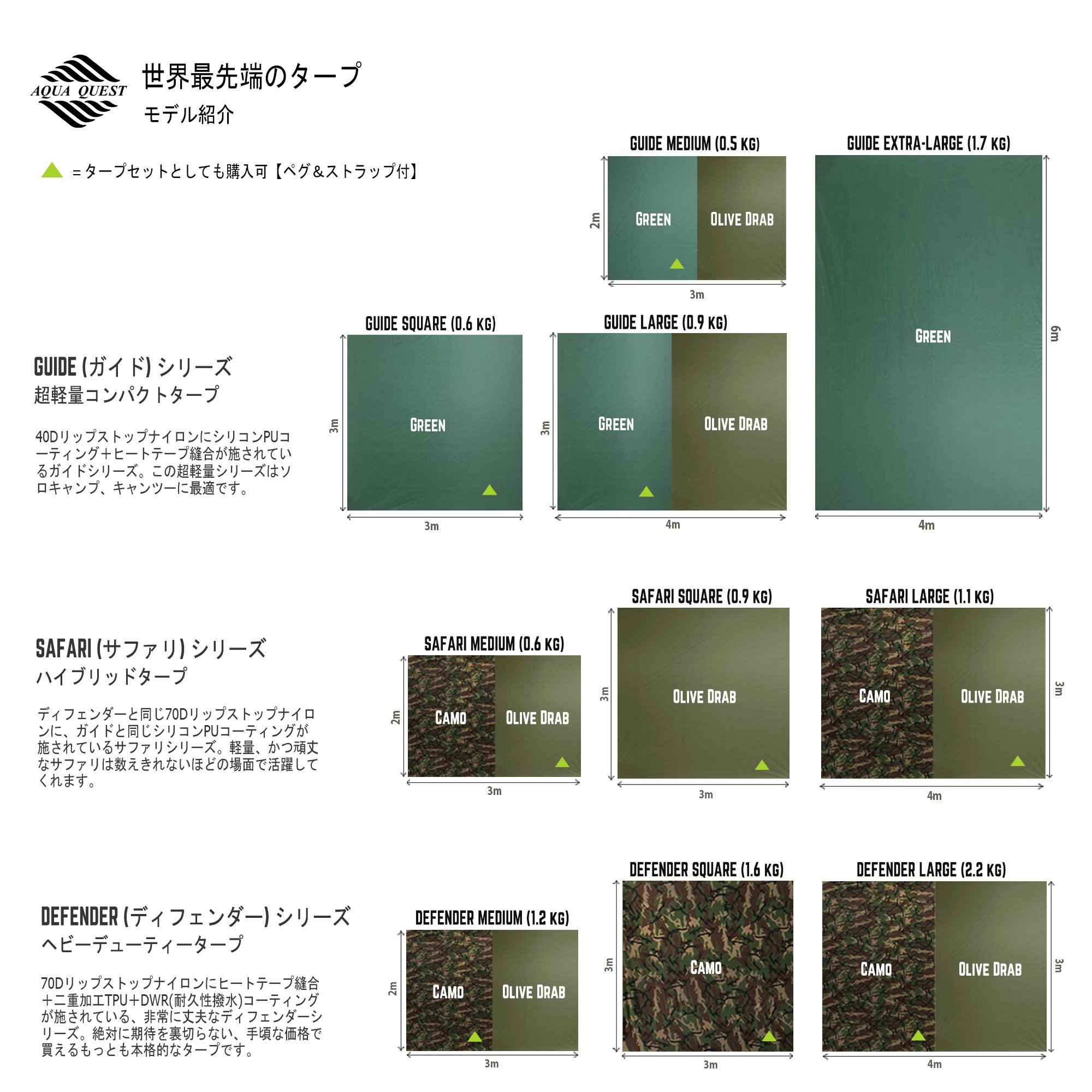 Loops, steaks, pegs, poles etc. AQ Tarp can respond flexibly.