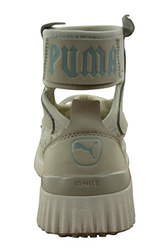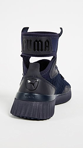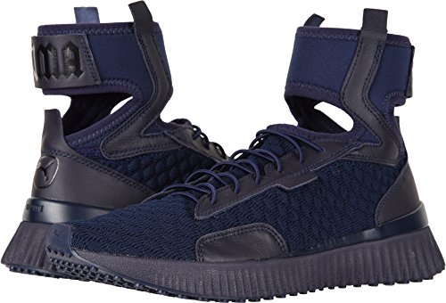 Studio : PUMA Publisher : PUMA Binding : Apparel Product Description Sneakers meet stiletto heels.PRODUCT STORYMost likely to break the rules, Rihanna returns as PUMA Creative Director for her third season. Varsity jackets are reimagined with exaggerated dimensions. The latest FENTY PUMA by Rihanna collection takes classic school uniforms and dismantles them. Preppy meets provocative. Unexpected cutlines, premium materials, and chenille patches abound.Ready to be schooled? Then gear up, step up, and serve some wicked attitude. This fully knitted sock construction is an easy to wear mid cut trainer, taking cues of the hi knitted trainer. Finished with the traditional lace up construction, can be worn in many different ways and is a great easy on/off sneaker. The midsole supplies extra support with IGNITE foam.DETAILSRubber outsoleIGNITE midsole for extra supportFully integrated knitted sockPUMA cat logo on the heels. 0