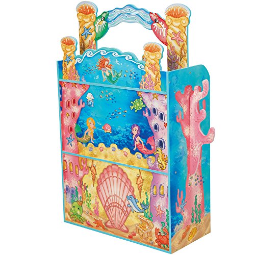 -. Feature : A wooden three-level, colorful play structure detailed on the front, back, top, and sides / Includes 4 double-sided mermaids, 4 double-sided sea creatures, and wooden sea-life furniture of a whale headboard, clam shell tub, fish table and stools, crab stove, dolphin chaise, and an octopus chest / Measures 33" W. x 11½" D. x 39½" H. / Assembly required / Ages 3 yrs. +
