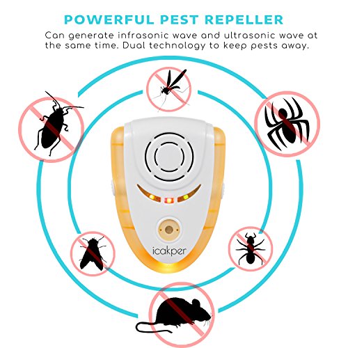 2 Pcs iCakper Pest Repeller Ultrasonic Deterrent Control Electronic Plug In Pest Repellent Chaser Rodent Mouse Mice Rats Cockroaches and Insects