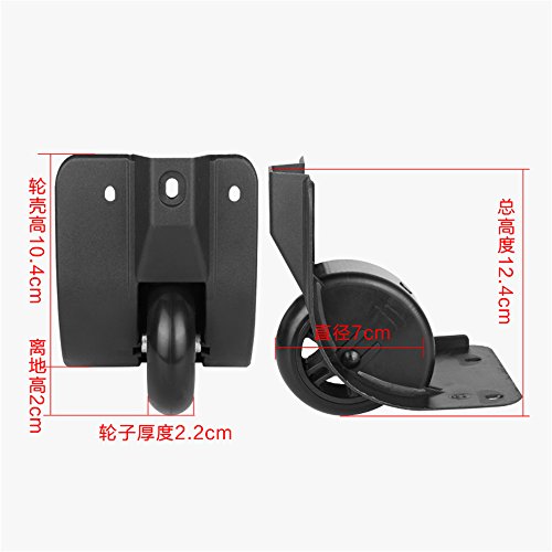 Studio : Shenzhen Honest Chenxi Trading Company Ltd Publisher : Shenzhen Honest Chenxi Trading Company Ltd Product Description Packing list :A pair(1pcs left and 1pcs right) wheel as first photo and come with Screw Material of Item: Plastic (PVC PP) Size of item :As photo show Product features: wear resistant ,Suitable for the use of ordinary luggage box ,And need you have a strong ability in DIY Please see the attached image for the approx. wheel widths for each diameter. 0