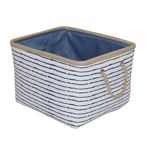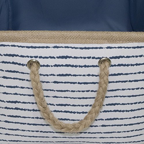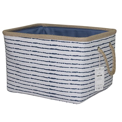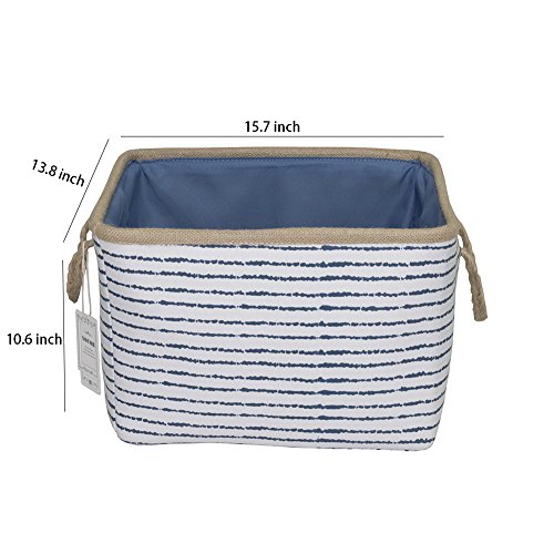 YOUOR 100% Natural Cotton Canvas Navy Stripe Storage Basket Storage Bins Hampers Toys Clothes Organizers with Cotton Rope Handles (Rectangle)