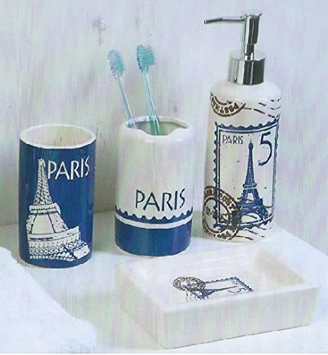 -. Title : Indecor Home 4 Piece Ceramic Paris Bath Set