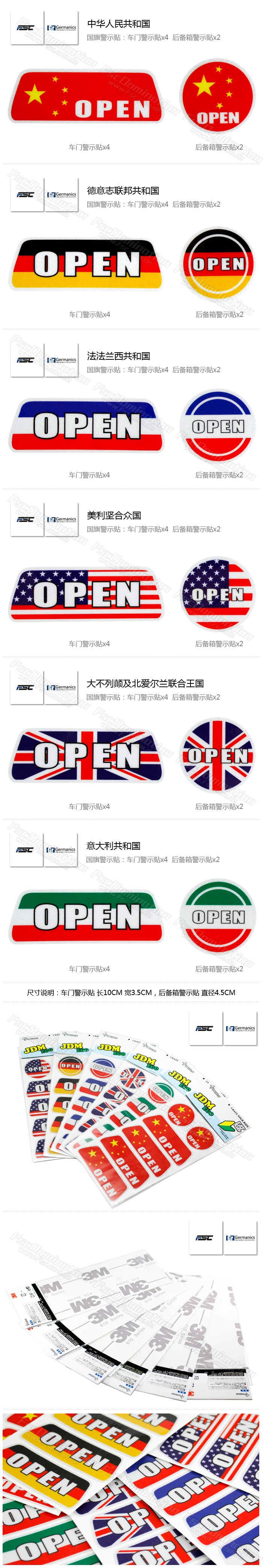 New! [Flag Version] a total of six. In addition to four car door, opened the trunk and another two warning stickers!