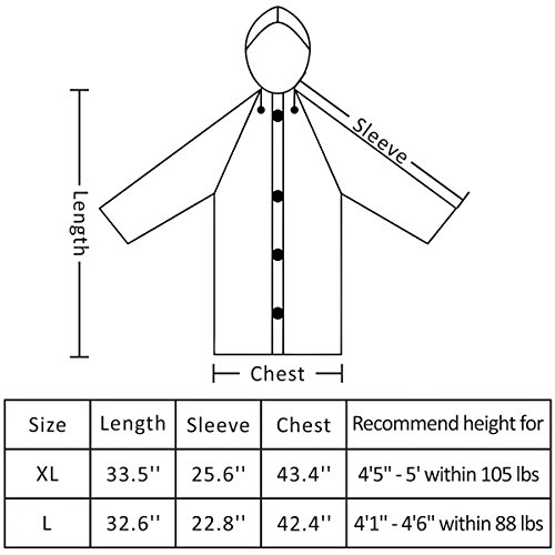 Reusable EVA Rain Poncho with Big Brim and Drawstring Hood for Kids & Teenagers - Recommend for 4'1'' - 5'