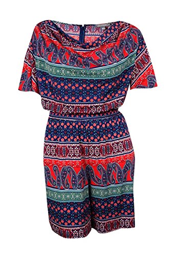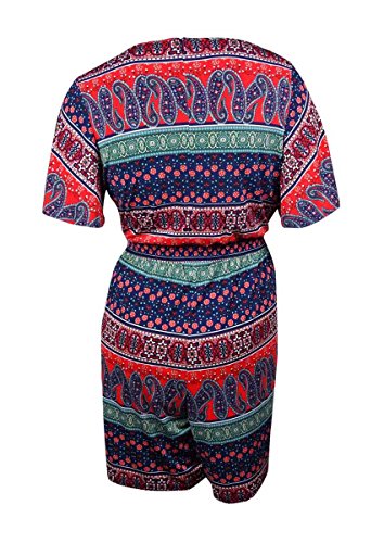NY Collection Women's Plus Short Sleeve Printed Shorts Romper 1x Multi