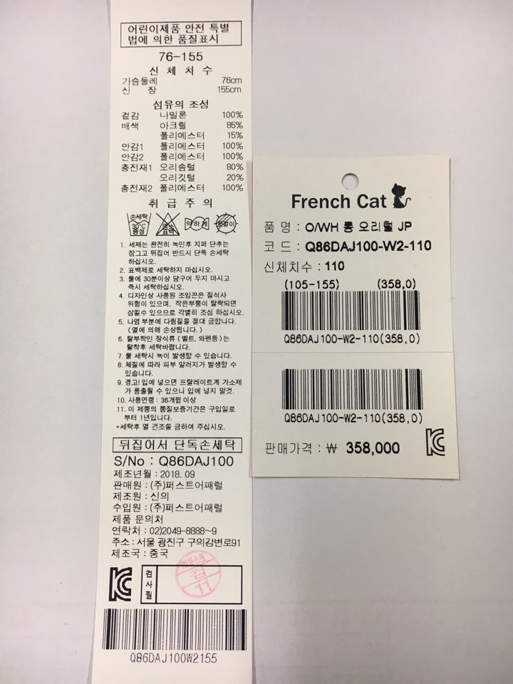 제조자 : 퍼스트어패럴