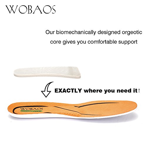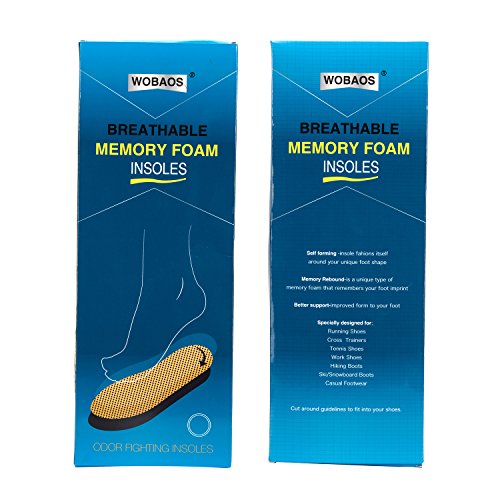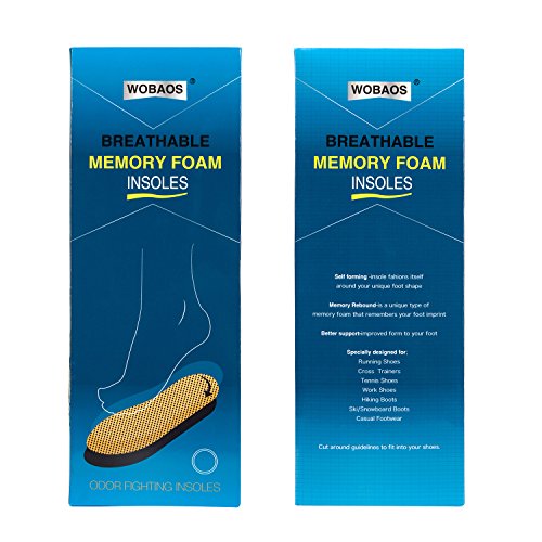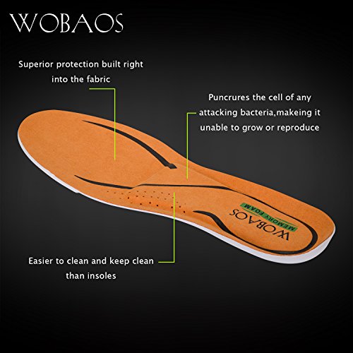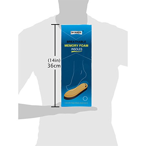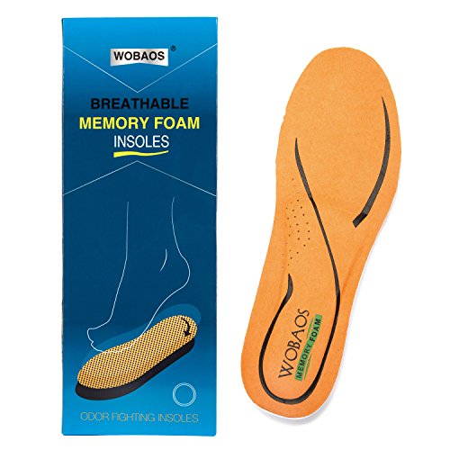 -. Brand : WOBAOS -. Color : Orange -. Department : unisex-adult -. Feature : High quality memory foam allows custom match to your feet. / Air Pillow, Stoma design allows better air circulation. / Ultra-light design,Ultra-soft cushioning, Fits in virtually any shoe. / Active carbon fiber removes odors. / Full arch shell provides additional support for improved motion control and side-to-side stability. -. PackageQuantity : 500 -. ProductGroup : Shoes -. ProductTypeName : SHOE_ACCESSORY -. Title : WOBAOS Shoes insoles Memory foam Orthopedic and Air Pillow Insole Unisex Shoes,for Everyday Use.