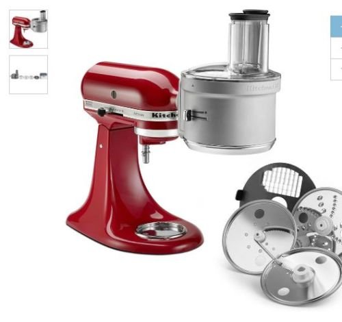esigned for use with KitchenAid stand mixers Easy to assemble and connect to the attachment hub of the stand mixer ExactSlice system to slice from thick to thin with one slide of the lever Wide feed ttube accommodates various sizes of food for less prep work Dice 8 mm uniform cubes Slice thick to thin Shred fine to coarse Julienne long, thin strips Designed for easy cleanup after use