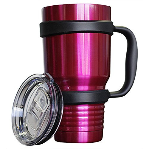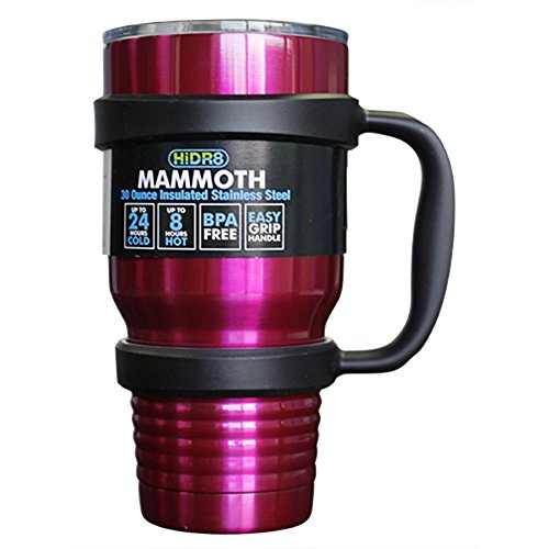 Mammoth Violet 30 oz Double Wall Vacuum Insulated Steel Tumbler Cruiser Thermos Clear Tight Lid with Sliding Sip Cover and Strong Black Handle. Keep Drinks Hot and Cold. Sweat & BPA Free.