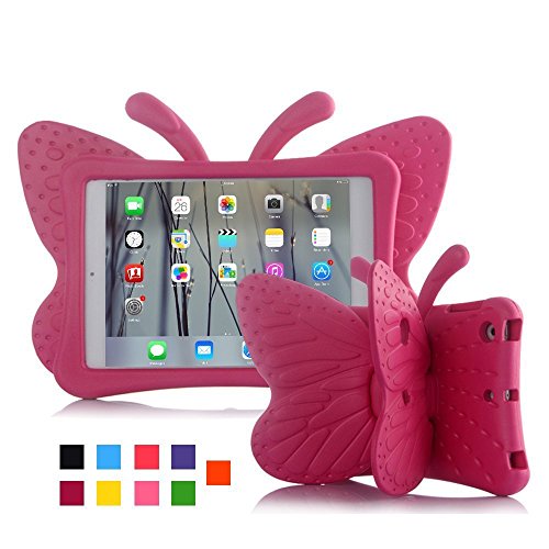 iPad mini case for kids, Feitenn Non-toxic Light weight 3D Cartoon Butterfly EVA Shockproof Drop proof Stand Case for Ipad Mini / Mini 2 / Mini 3/ Mini 4 case (Rose)