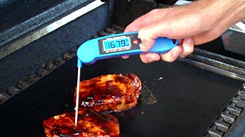 Studio : TouchOf Publisher : TouchOf Product Description Super-fast thermometer is perfect for Kitchen and Outdoor cooking. Measure the temperature of a whole array of items such as meats, candy, oil, brewing beer and wine, baby's formula, bath water and even making cheese and bread. Easy to carry and store in your kitchen drawer or hang up with the convenient hang hole. The Backlight is large and bright so guessing if your food is done at your after-dark-BBQ is a thing of the past. Audio for temperature reading is easy to understand and hear. Probe needs 2 AAA batteries, not included. Auto-shut off saves battery life. If readout stays on for 10 minutes, Probe will turn off. Folding probe back to tucked position will also turn off Probe. Easy directions included on packaging with food temperature reference chart. Specification: Temperature Measuring Range: -58℉ (-50℃) ~ 572℉ (300℃), Material: ABS Stainless Steel Probe. Measuring Time: 4 -7 seconds. Power Supply: 2 1.5V AAA Batteries(Not Included). Display resolution - 0.1. Size: 6 x 1 x 1 inch. Notice: 1. DO NOT leave the thermometer in oven while the oven is working. 2. KEEP OUT of reach of children. 3. DO NOT touch the hot probe with bare hands. 4. Wash the metal probe in soapy water. Clean the thermometer body with damp cloth. 5. The metal probe can be sterilized by soaking in boiling water for several minutes. 6. This is NOT A TOY. Use by Adults or under Adult Supervision. Package Includes: 1 Instant Read Digital Thermometer. 0