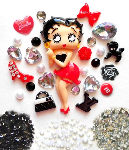 LOVEKITTY DIY 3D Betty Boop Bling Bling Cell Phone Case Resin Flatback Kawaii Cabochons Deco Kit