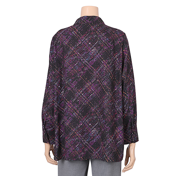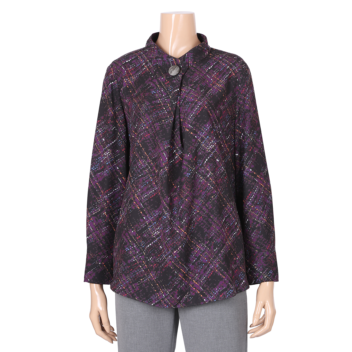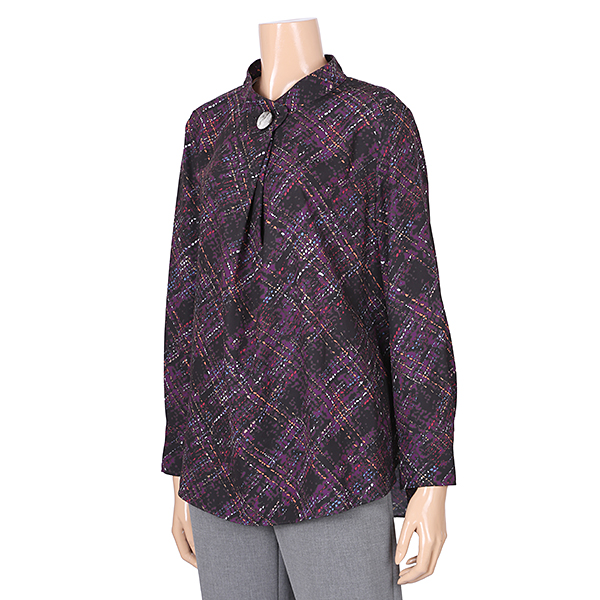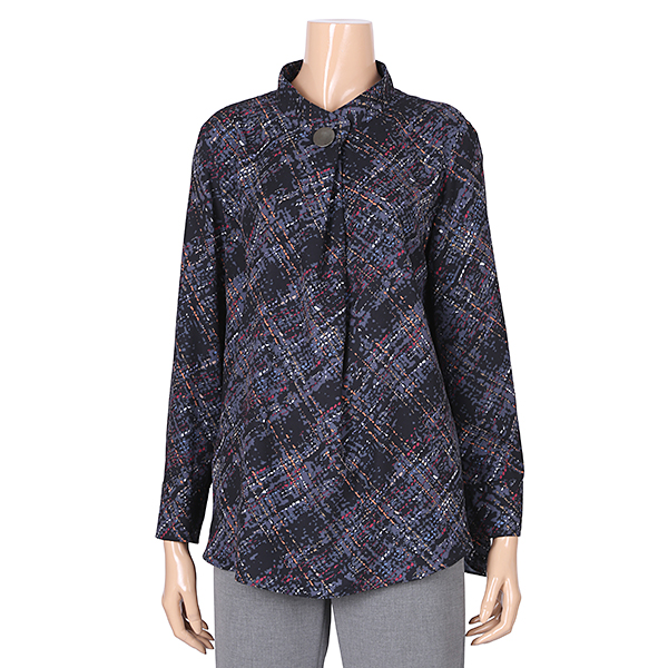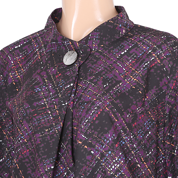 멋스러운 기하학적인 프린트의 세련됨으로 매우 고급스럽고 세련되며 특히 목선의 빅사이즈의 단추의 포인트로