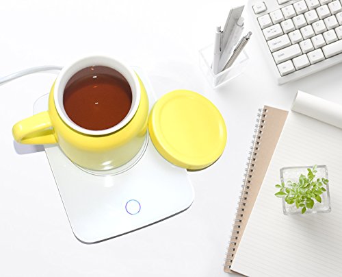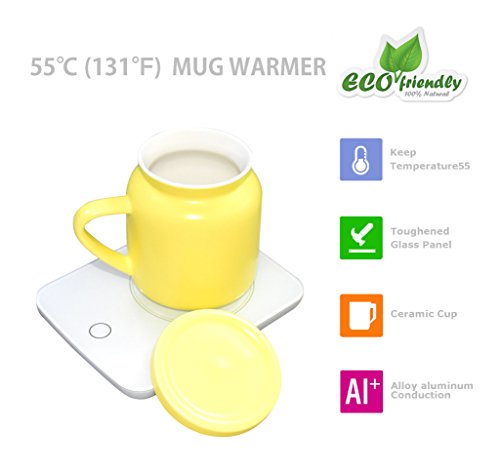 OKCafe Auto Shut Off Coffee Mug Warmer Electric Heat Cup Warmer for Milk Include Yellow Ceramic Mug for Office and Home Use 10.8 Ounce