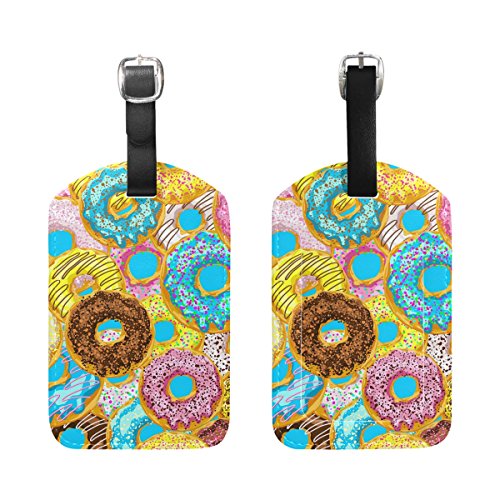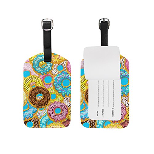 (My Little Nest)/Accessories/Luggage, Bags Travel/DIRECT FROM USA/Travel Luggage Tag Colorful Donuts With Sprinkles PU Leather Baggage Suitcase Tag Name Address ...