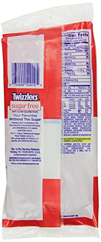 -. Feature : Perfect for snacking, sharing, and taking on the road / Strawberry-flavored chewy candy / Sugar free and low fat / A kosher candy / Includes 12 bags of TWIZZLERS Strawberry Twists, Sugar Free (5-Ounce Bag)