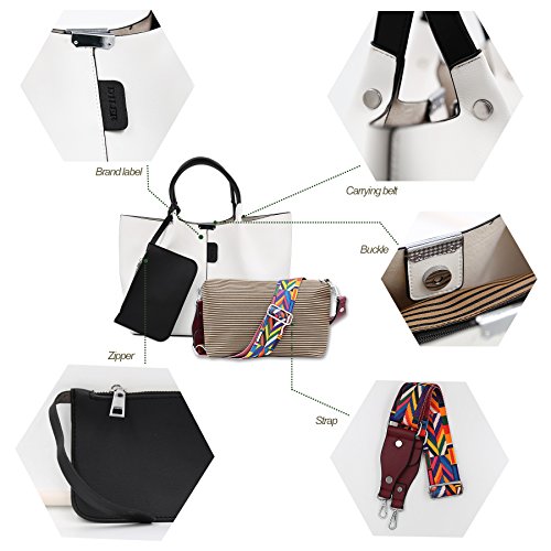 FEATURES:Inside (removable pouch). Each bag offers an extra shoulder strap to decorate your bag