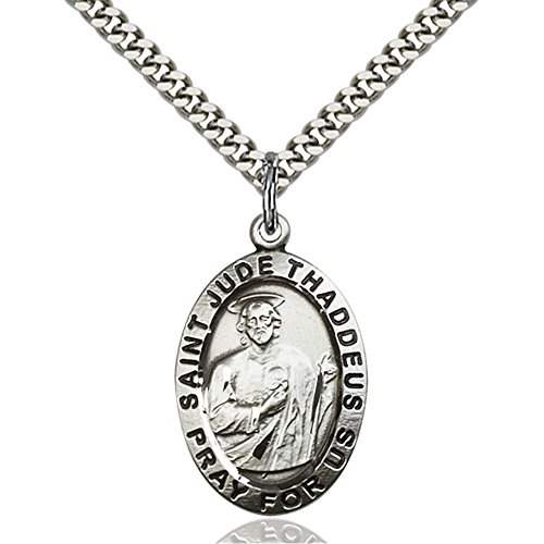 (Bonyak Jewelry Saint Medal Collection)/Baby Stationery/Stationery Sets/DIRECT FROM USA/Sterling Silver St. Jude Pendant 1 x 5/8 inches with Heavy Curb Chain