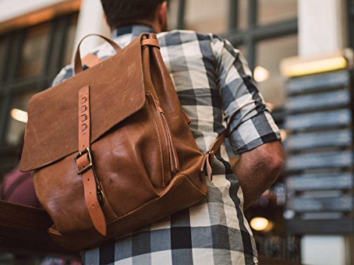 Studio : Embrazio Publisher : Embrazio Product Description This is the perfect handmade all leather backpack. As timelessly stylish as it is functional, the Renaissance handmade all leather backpack features a deep zippered pocket in front so you can store mobile phone, chargers, and other smaller items without having to open the front flap. The front flap buckle allows you to adjust to expand or contract the interior capacity and, once set, you get easy access via a tuck lock beneath the buckle so you don't have to constantly open and close the buckle to get in. Sam Brown Rivets with small straps are an elegant way to tighten or expand the top of the main compartment. A single handed leather loop at the top makes carrying as a brief case a breeze and the shoulder straps converge on a fashionable metal ring at the top of the back giving you a comfortable and stylish wear over the shoulders. There's also a full length zippered pocket in the back for your most secure items and inside you'll find high grade canvas lining, another zippered pocket, and sleeves for your passport, glasses, and pen. All in all, there's lots of room for your 15" lap top, extra jacket, and much, much more. Handmade by our leather artisans with top quality luscious leathers and hardware, the Renaissance will quickly become your favorite regular companion on trips to the office, coffee shops, vacation spots, or wherever your spirit takes you! 0
