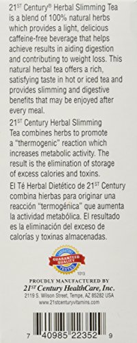 -. Binding : Health and Beauty -. Brand : 21st Century -. Label : 21st Century HealthCare, Inc. -. Manufacturer : 21st Century HealthCare, Inc. -. ProductGroup : Health and Beauty -. ProductTypeName : HEALTH_PERSONAL_CARE -. Publisher : 21st Century HealthCare, Inc. -. Studio : 21st Century HealthCare, Inc. -. Title : 21st Century Slimming Tea, Cran Raspberry, 24 Count