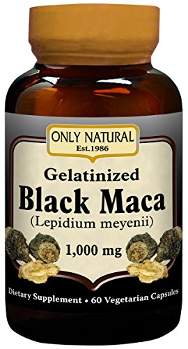 -. Title : ONLY NATURAL Gelatinized Black Maca 1000 mg 60 Vgc, 0.02 Pound